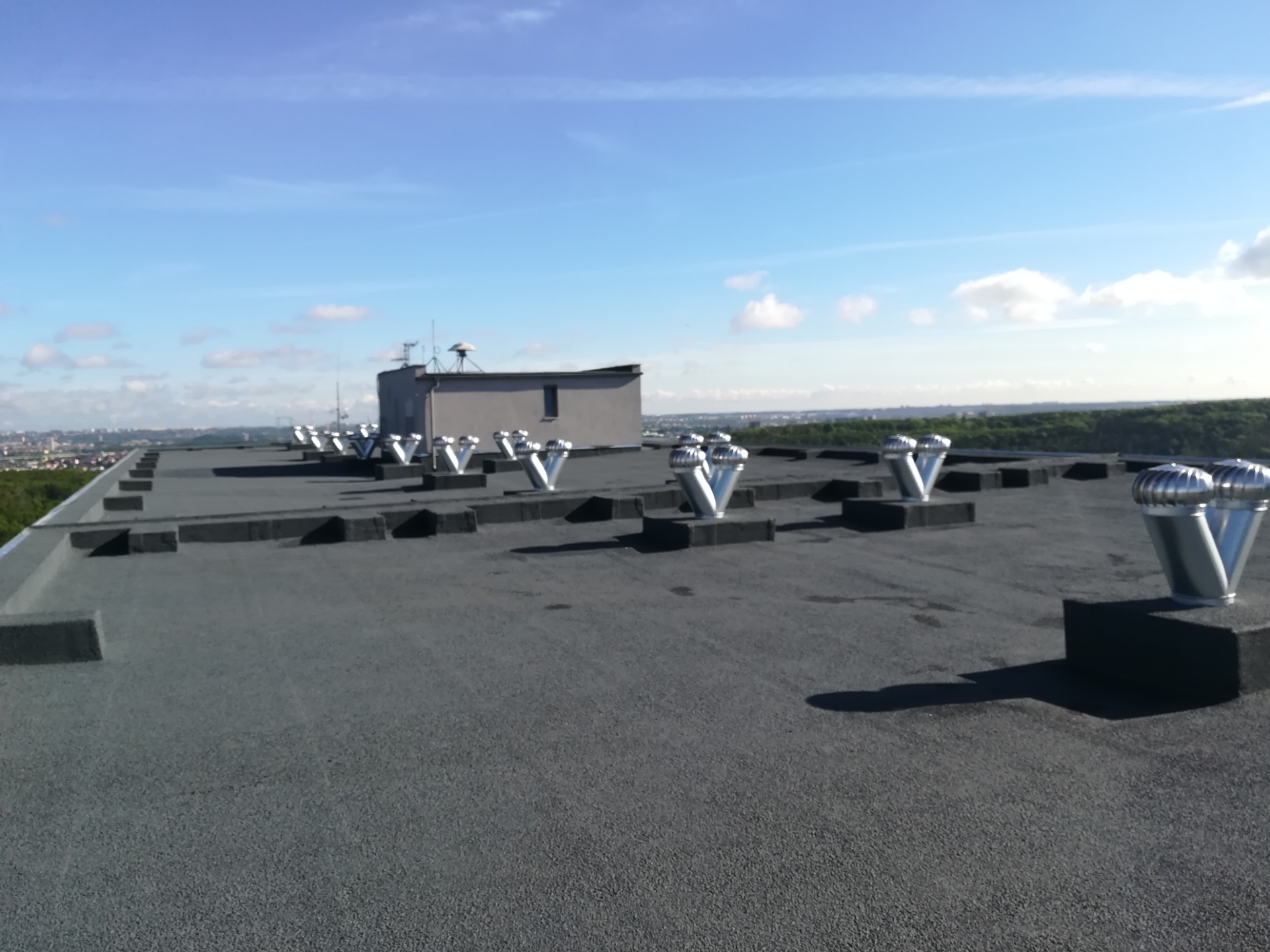 Hydroizolace plochých střech provádíme moderní technologií bez použití plamene. Tento způsob aplikace výrazně snižuje riziko vzniku požáru během realizace i v průběhu následného užívání střechy.