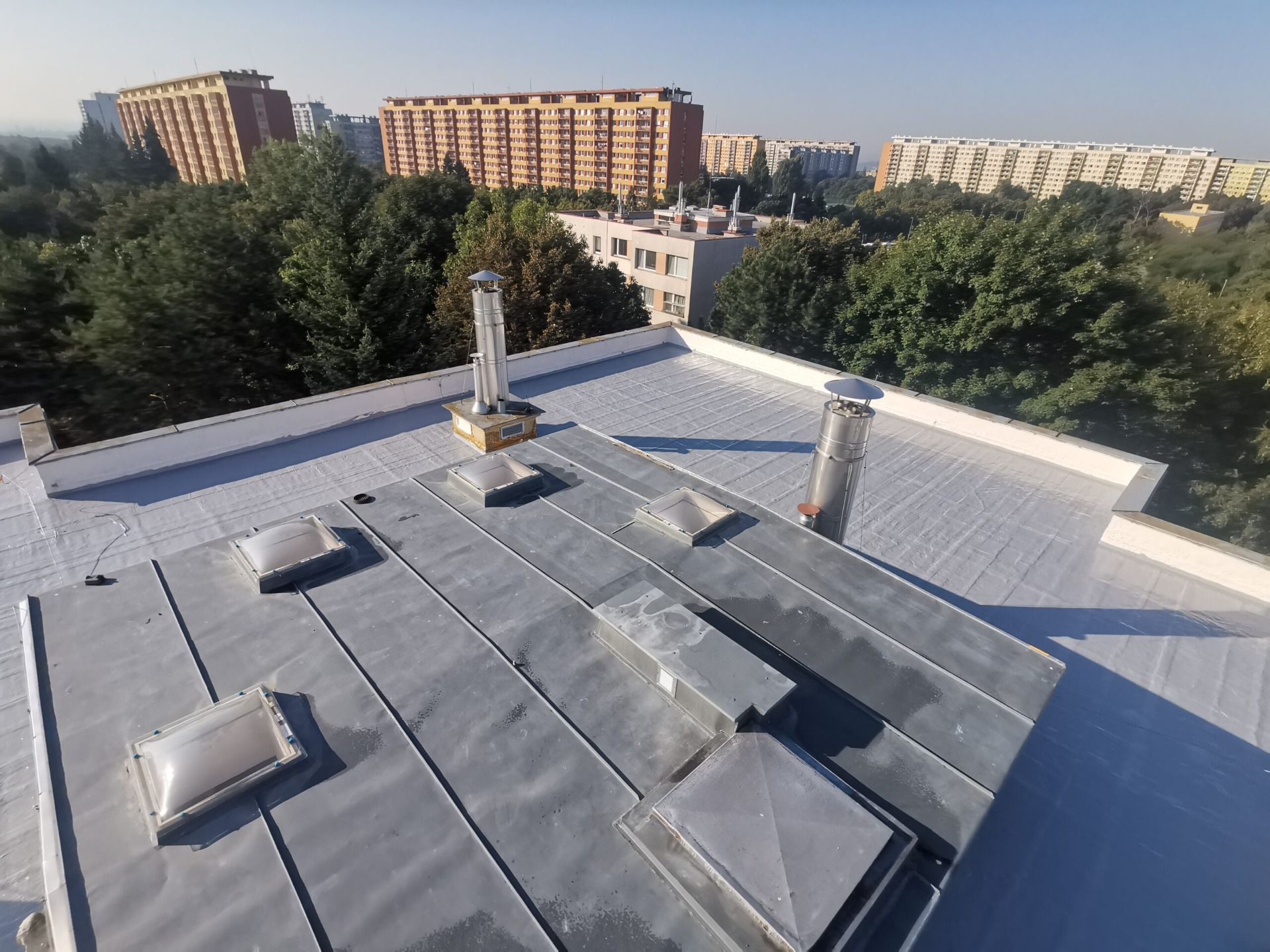 Zvolená technologie umožňuje provádět práce za plného provozu objektu bez rizika zatékání do bytových jednotek. Střecha je po celou dobu aplikace chráněná a nedochází k jejímu odkrytí.